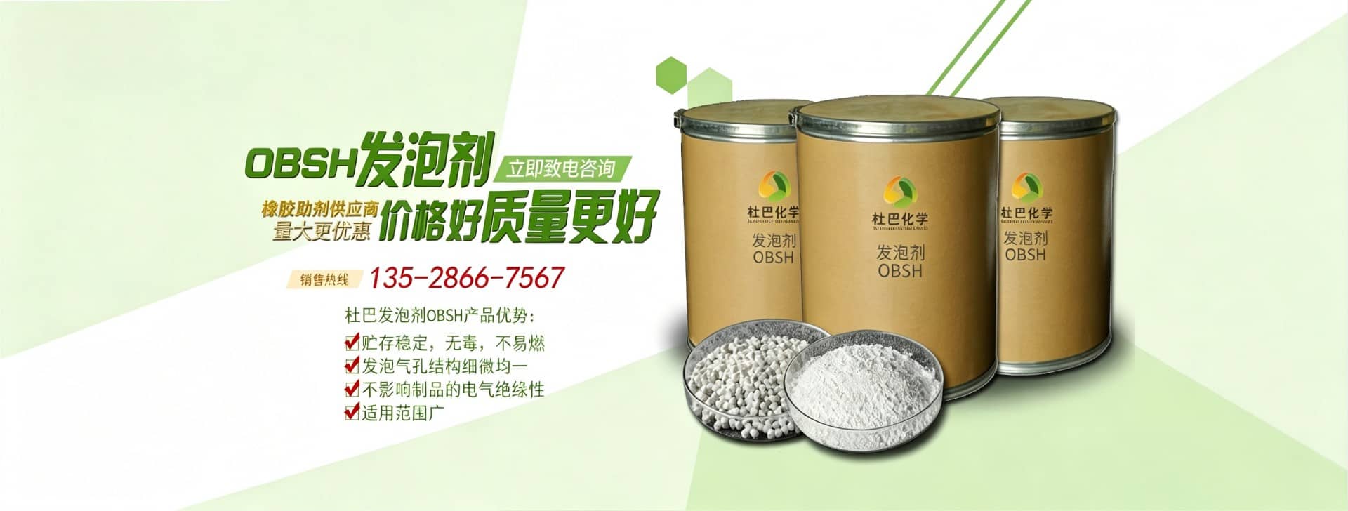 厂家直销、闪电发货,提供最优质的OBSH发泡剂、活性氧化锌等橡胶材料产品为企业提供一种快速、方便、安全、放心的采购通道!